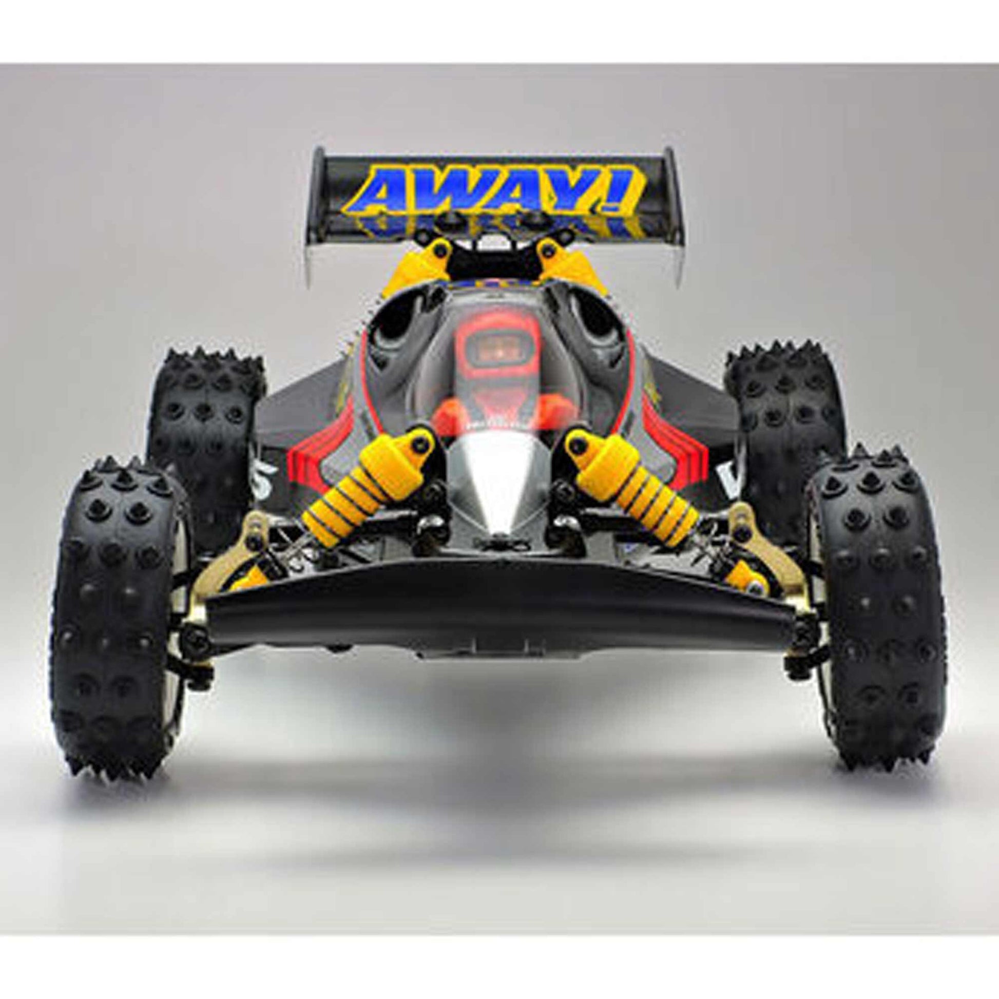 This model's durable ABS plastic monocoque frame protects vital R/C equipment and boosts suspension performance with its excellent rigidity. A total of three differentials are employed: small front and rear planetary gear differentials, and a center differential with ball thrust bearing; front and rear gearboxes also have maintenance hatches. Universal shafts front and rear ensure smooth, efficient drive and minimal worry about parts coming loose due to bumps and shocks, while the Avante-based 4-wheel double wishbone suspension employs plastic lower arms with threaded shaft upper arms that allow swift adjustment of camber. Front uprights are aluminum, and stabilizers are included for the front and rear.