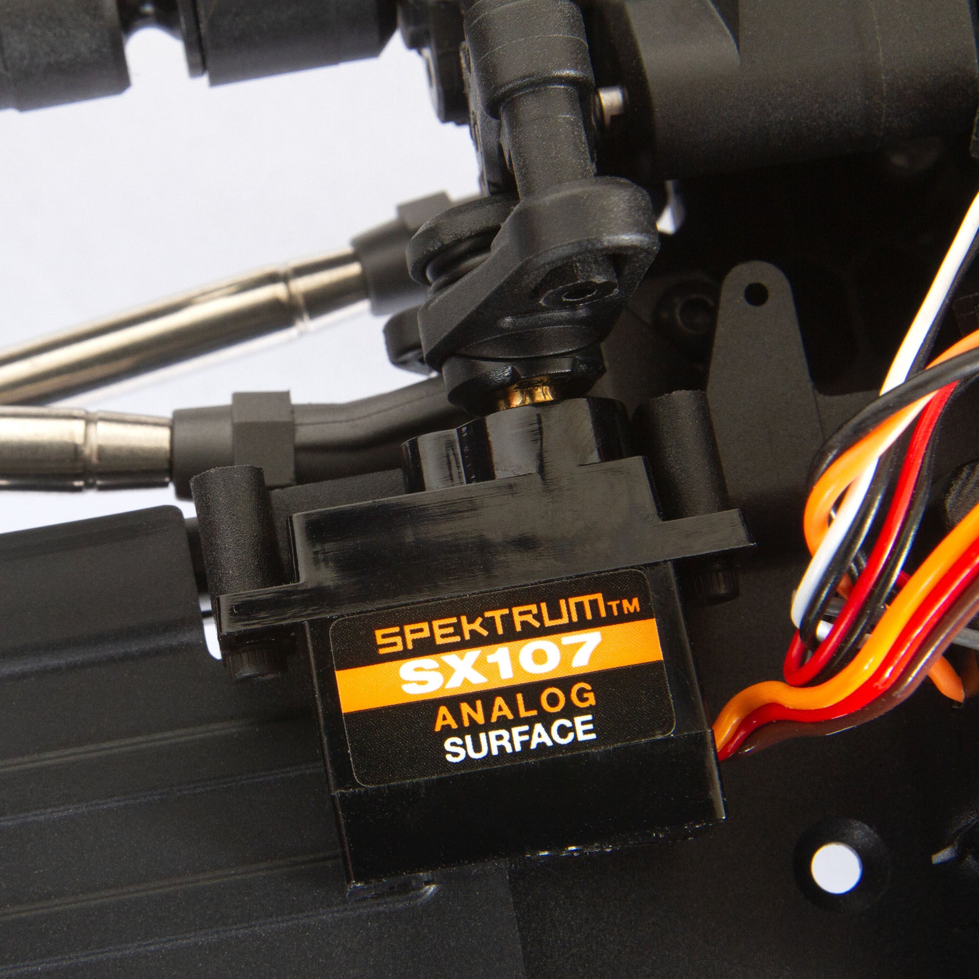 The included Spektrum™ DX3™ radio features exclusive DSMR® technology for superior range, response, and interference resistance. It's also fully compatible with the Smart telemetry potential provided by the vehicle's installed Spektrum™ Firma™ Smart 40A ESC/receiver. In addition, it comes with the thumb steering attachment for greater versatility when driving.