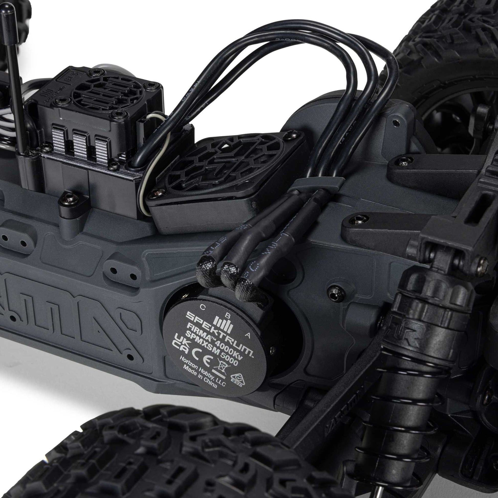Factory assembled and installed, the heavy-duty, metal gear differential sends power from the Spektrum 3660 4000Kv brushless motor to the rear wheels for blasting through challenging terrain. The entire power system is well-protected for dependable performance on all terrain.