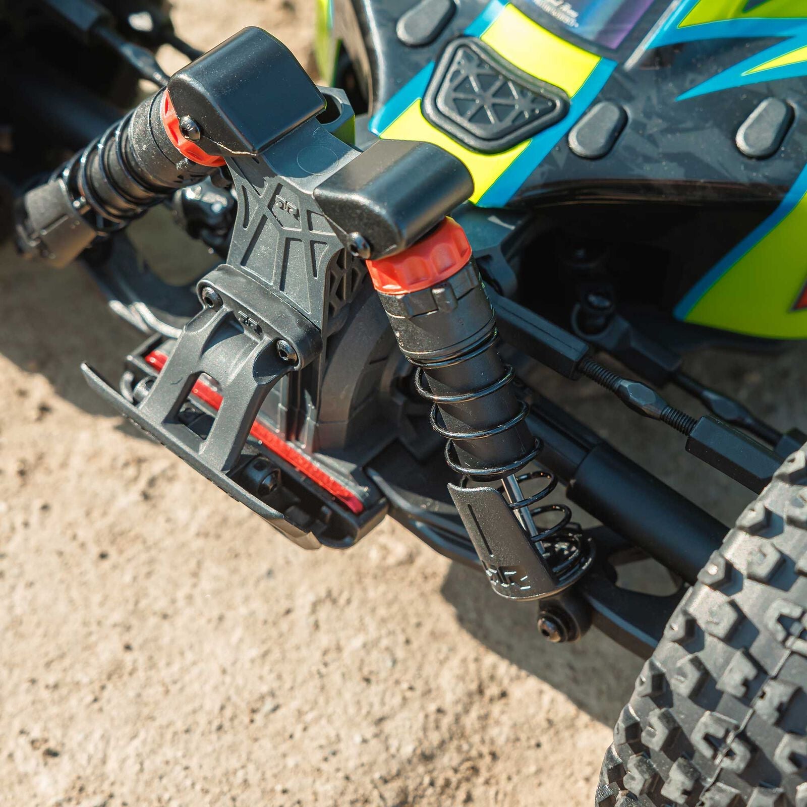 ARRMA developed the 223S series especially for brushless bashing newcomers who want to grow from 2S to 3S power without adding expensive upgrades or buying a whole new vehicle. On a 2S LiPo the TYPHON 223S BLX reaches 35+ mph top speeds, matching or beating the best that other manufacturers’ 2S bashers can do. Whenever you’re ready, plug in a 3S battery. Now you can unleash the buggy’s full 50+ mph potential!