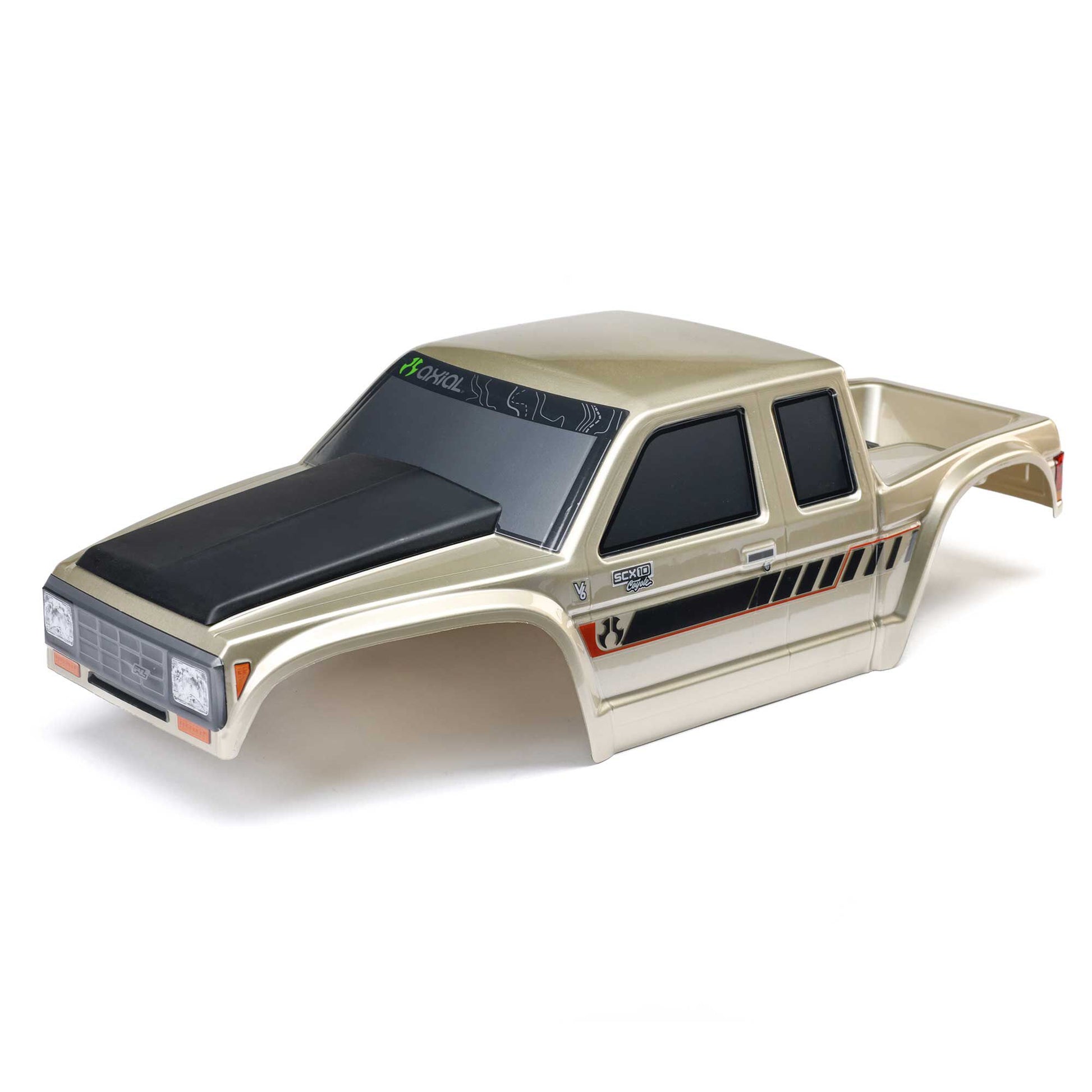 Axial also incorporates a clipless mounting system for the Pro-Line Coyote body, enhancing the rig’s looks by eliminating visible body clips. The body is hinged at the rear and removes completely for effortless chassis access. There are no clips to fuss with and lose. For the best performance on the trails, the body is pinched in the front, dovetailed, and bobbed in the rear, and only as wide as necessary. It slips through narrow obstacles and allows ample tire clearance and suspension articulation.